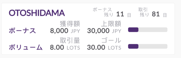 - ボーナスが取引口座に反映された後、取引ロットのカウントが開始します。